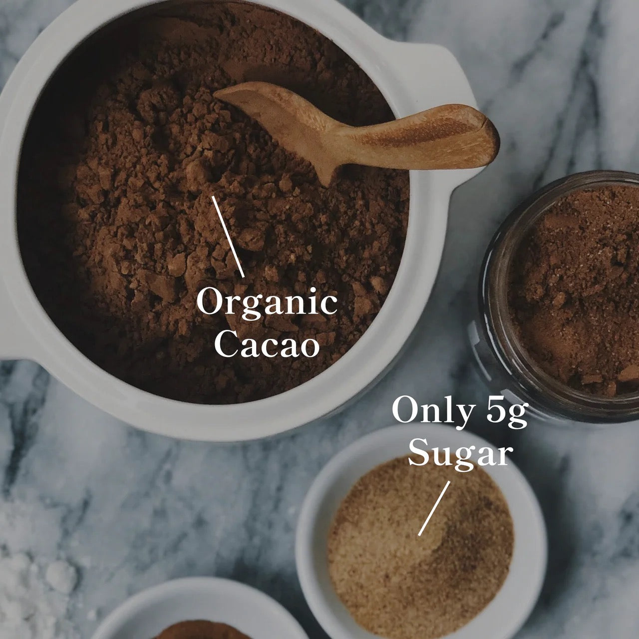 + 5g sugar per serving—less than 1/3 of the sugar found in other popular hot chocolate. Sweetened with monk fruit and coconut sugar.