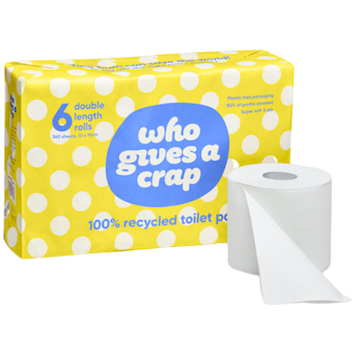 Who Gives a Crap - Eco Friendly Toilet Roll, Pack of 6 Double Length Rolls- 3-Ply 360 Sheets